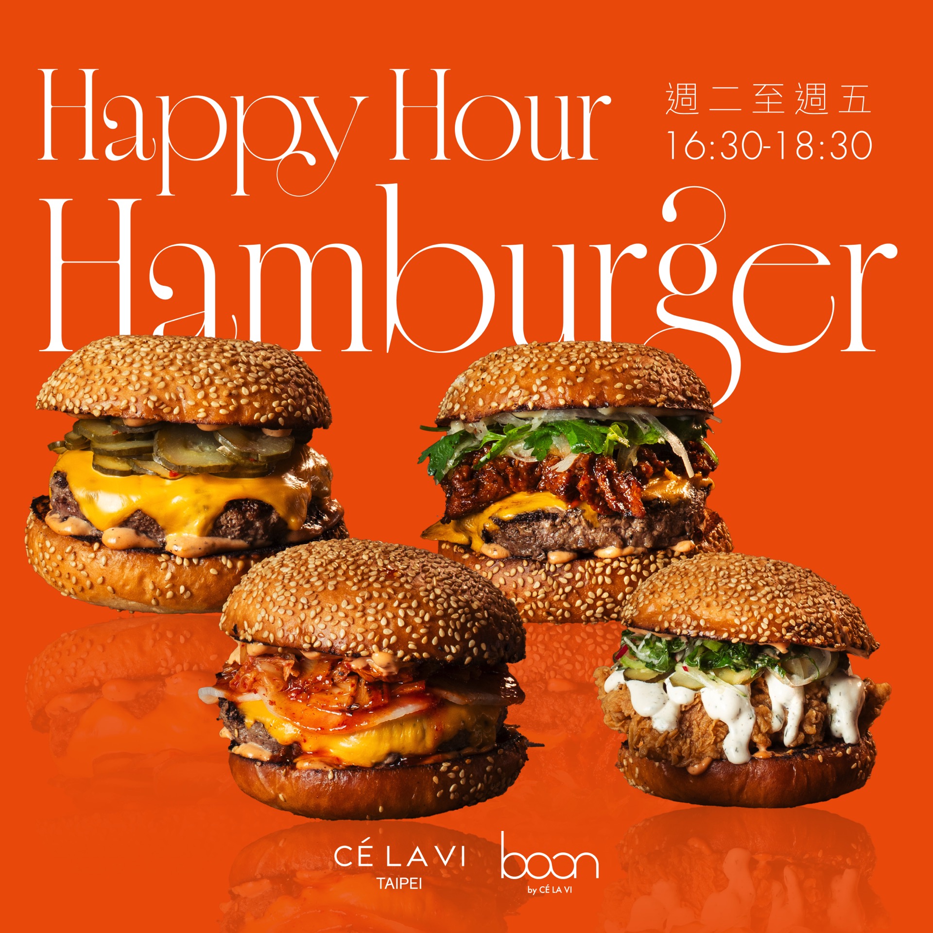 Hamburger Night 就在 Boon by CÉ LA VI 四款高人氣漢堡——每一口都罪惡又滿足.